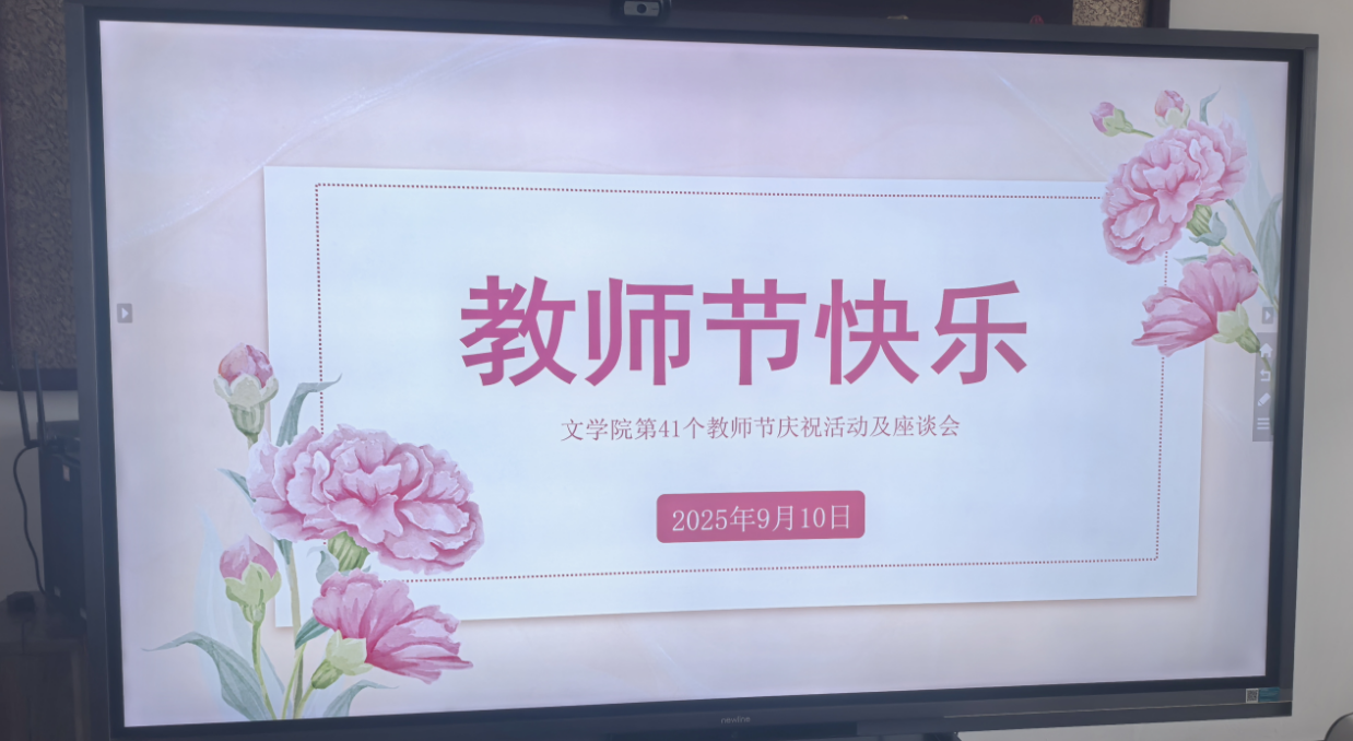 金秋九月,桃李芬芳。为深入学习贯彻党的二十大和二十届二中、三中全会精神,切实做好第41个教师节宣传庆祝活动,营造尊师重教的浓厚氛围,激励广大教师牢记使命、砥砺前行,弘扬践行教育家精神,响应学校号召,本着“隆重、热烈、务实、简朴”的原则,文学院于2025年9月10日下午3:00以教师座谈会的形式开展庆祝教师节活动。