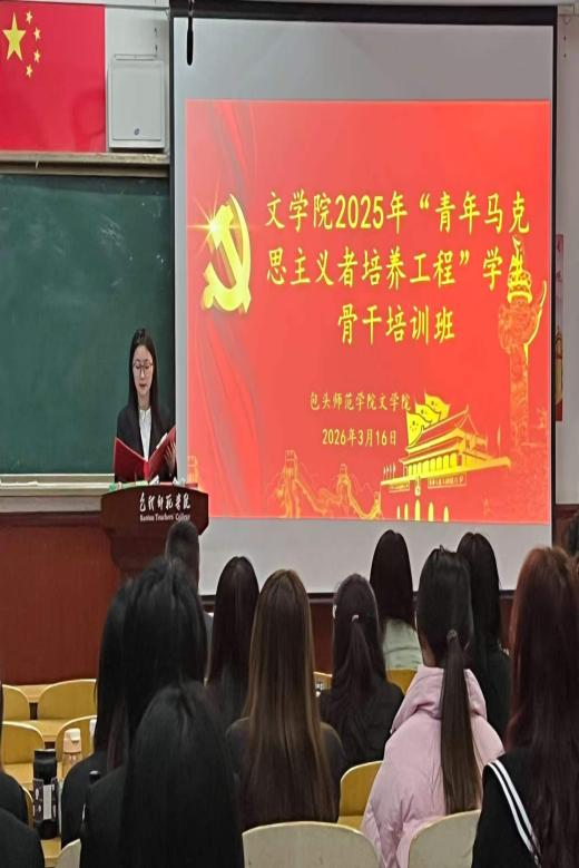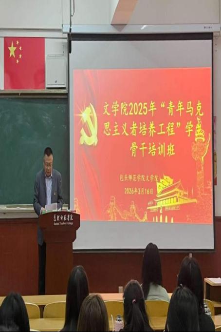3月16日晚,文学院在博学楼400教室举行“青年马克思主义者培养工程”学生骨干培训班开班仪式。文学院党总支书记赵洪宝出席并讲话,团总支书记贺芬、青马班全体学员参加。