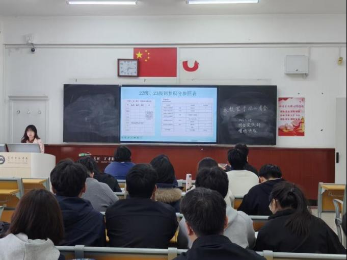 帮助同学们精准掌握第二课堂学分新规、模块划分及积分转换细则,3月24日下午,文学院组织开展“到梦空间”专题培训活动。本次培训由文学院学工办主任贺芬主持,学生会主席张晴担任主讲人,文学院各班班长、学生会各部门部长参与本次学习。